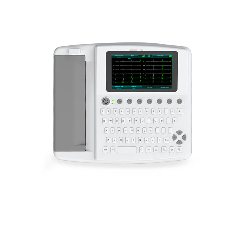 Professional 12-lead ECG with 7″ color touchscreen, automatic interpretation, and 1000-case storage. Includes rechargeable battery and PC software compatibility. Ideal for clinical diagnostics.